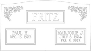 Third, think about the layout. How would you like the layout of the stone to look? The classic layout of a granite memorial is to have the family name (last name) front and center towards the top. The names and dates would be places towards the bottom. Then, decide if you want the names to be in panels or skin blown onto the granite memorial stone (see diagram below).